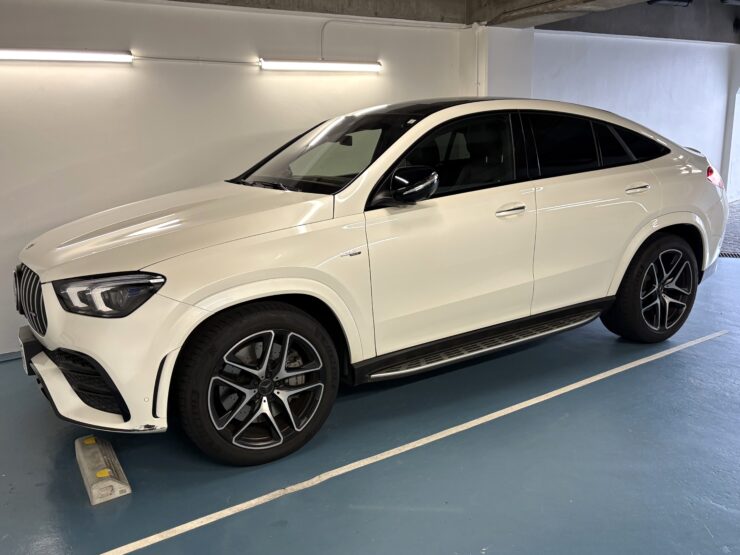 左ハンドル仕様のGLEクーペ53をご売却いただきました!ダイヤモンドホワイトにAMGインテリアカーボンパッケージ、パノラミックスライディングルーフなどフルオプションの一台です。