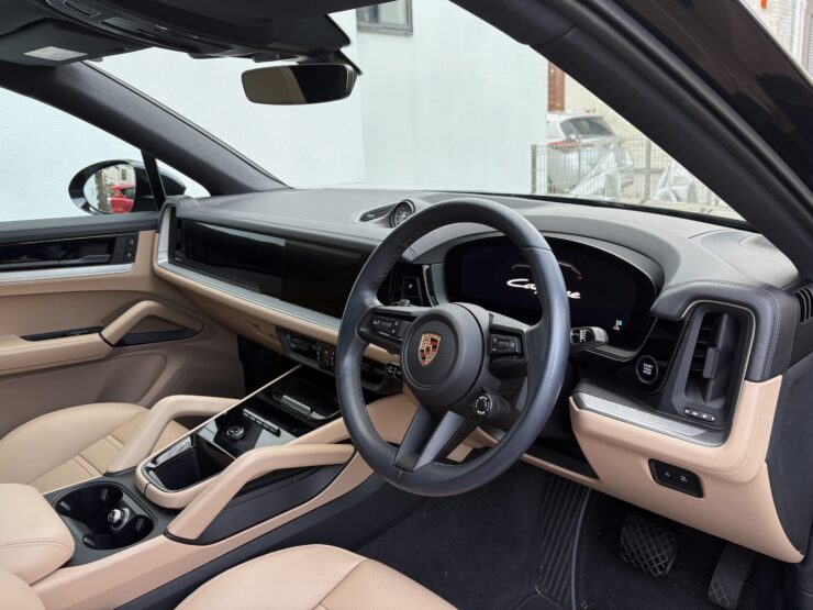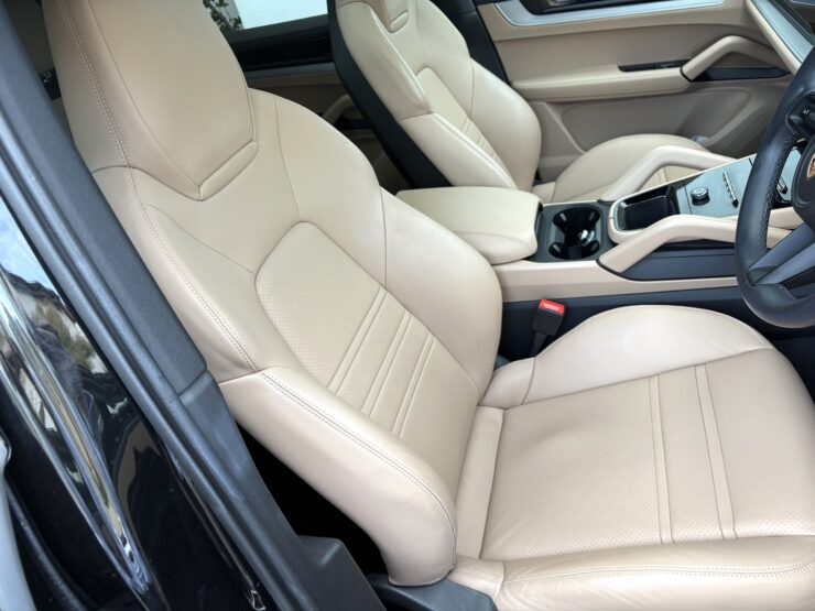 現行型のカイエンクーペをご売却いただきました!内装はお洒落な黒×モハーベベージュのツートーンレザー、リアコンフォートベンチシートにより5人乗り仕様となっており、4ゾーンエアコンと合わせてファミリーカーとしてもお使いいただけるお車です。