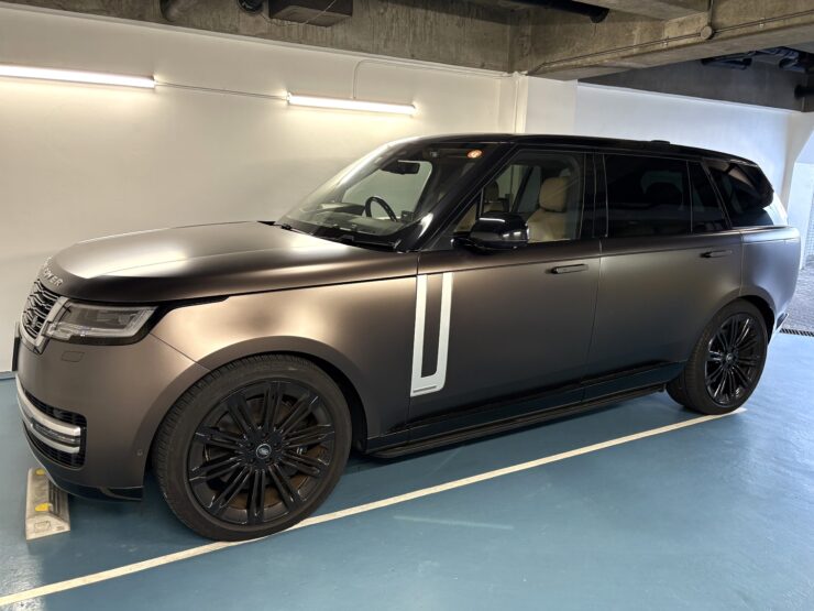 ラグジュアリーSUVの代表格、ランドローバー レンジローバーをご売却いただきました!上品なサテンフィニッシュのトルマリンブラウンに身を包んだこちらのお車には、電動サイドステップや11.4インチリアエンターテインメントが装備されています。
