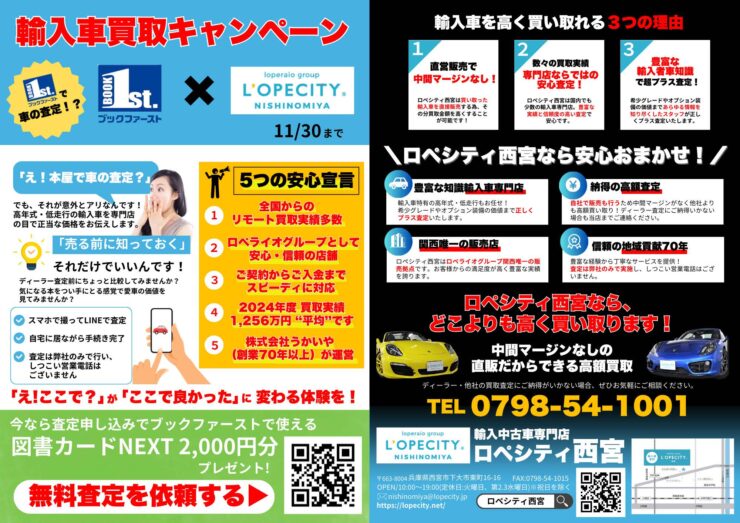 本屋で車の査定!?『ブックファースト × ロペシティ西宮 輸入車買取キャンペーン』